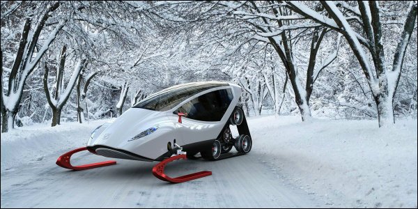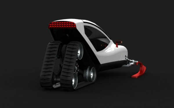 Проходимость лыж и сразу двух гусениц в данном концепте сочетается с удобной автомобильного типа кабиной, где можно пребывать в тепле и комфорте.