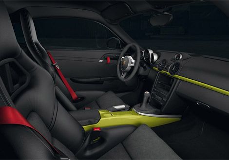 Новинка "похудела" на 55 килограммов за счет использования более легких компонентов подвески и отказа от части вспомогательного оборудования - на Cayman R, к примеру, не устанавливается аудиосистема, используется более легкий литий-ионный аккумулятор, а объем бензобака был уменьшен с 65 до 54 литров. Еще пять килограммов удалось сэкономить на колесных дисках. В итоге, масса купе составляет всего 1295 килограммов.
