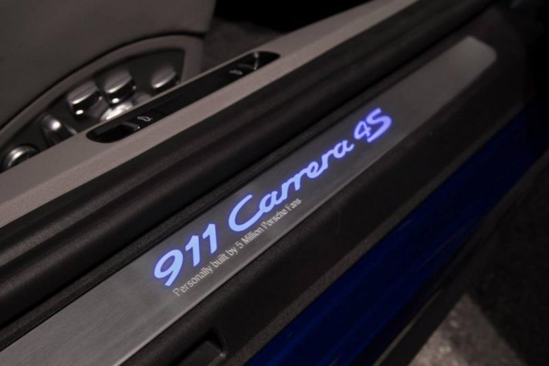 Кроме того, на кузов наклеили белые полосы, а также установили накладки на пороги и центральную консоль с надписью «Personally built by 5 Million Porsche Fans» («Лично построено пятью миллионами поклонников Porsche»).
