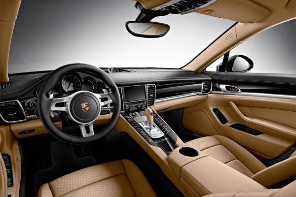 Спорткар отличается от стандартной версии черной глянцевой окантовкой окон, 19-дюймовыми колесными дисками Panamera Turbo II с изображением герба Porsche, а также би-ксеноновыми фарами. Также водителю доступны усилитель рулевого управления, камера заднего вида и активная подвеска.