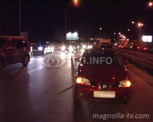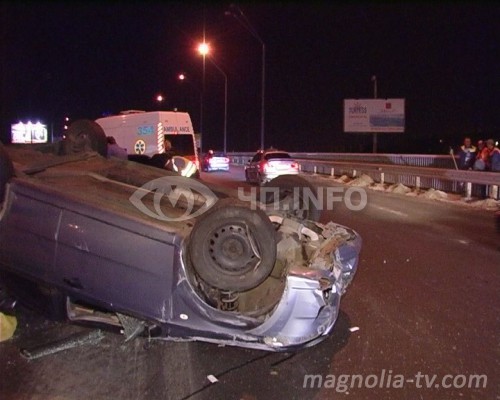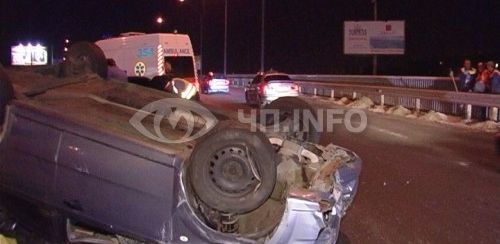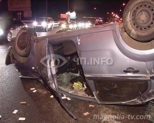 Со слов водителя Seat, его автомобиль на большой скорости с правой стороны пытался обогнать Chevrolet Aveo. Не закончив маневр, водитель Aveo пыталсяся встать в третий ряд и зацепил правое переднее крыло Seat. После этого hevrolet занесло на дороге. Авто перевернулось и замерло на крыше.