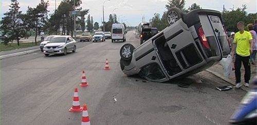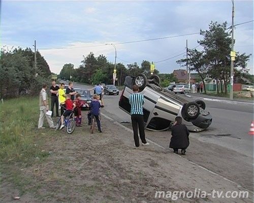 В Бортничах на перекрестке улиц Ленина и Промышленной столкнулись BMW и Fiаt. От удара Fiat перевернулся на крышу, сообщает .