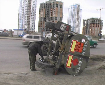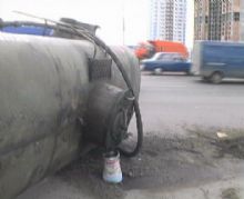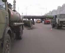 Пр-т Бажана (М. Осокорки) - оторвался и перевернулся прицеп бензовоза.