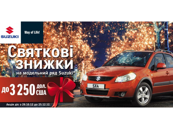 Теперь сделать себе и своим близким новогодний подарок и купить автомобили SUZUKI можно со скидкой до 3 470 $*