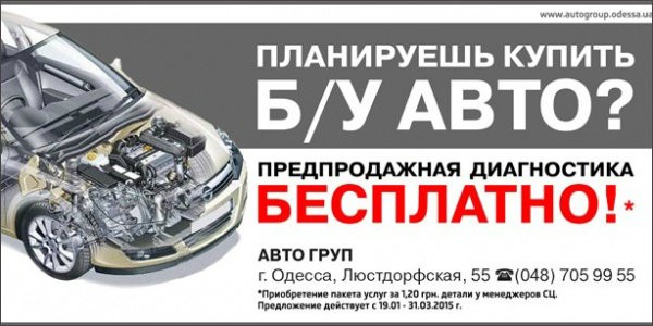 Записаться на проведение предпродажной диагностики Вы можете, отправив заявку на эл. адрес: service@autogroup.od.ua, либо позвонив по тел. (048) 705-99-55