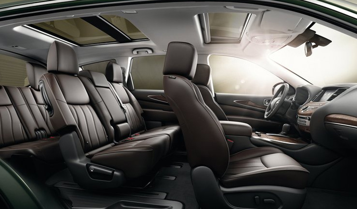 Во время презентации вице-президент компании Накамура Сиро сказал: «Сегмент кроссоверов с тремя рядами сидений — один из наиболее динамично развивающихся. Infiniti готова представить покупателям лучший подход к компоновке салона. Третий ряд сидений в нашем автомобиле — это не просто откидные кресла, которые складываются в правый и левый борт кузова, это полноценные посадочные места, рассчитанные для взрослых людей. Кроме того, пассажиры на втором ряду смогут двигать свои сиденья на 16 сантиметров назад или вперед».