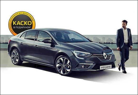 При покупці нового Megane Sedan в кредит, Ви може скористатися пропозицією з доплатою за страхування КАСКО в розмірі 2,56% від вартості автомобіля.