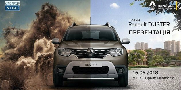 «НИКО Прайм Мегаполис», официальный дилер Renault в Киеве и Киевской области, приглашает 16 июня на презентацию нового Renault DUSTER.