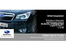 2 марта компания Субару Центр Альфа, официальный дилер Subaru в Харьковском регионе, выражает благодарность своим клиентам за плодотворное сотрудничество. И приглашает всех автомобилистов на праздничное мероприятие Subaru Service Day, в рамках которого будет проходить презентация Нового Subaru Forester 2013 в Харькове!.
