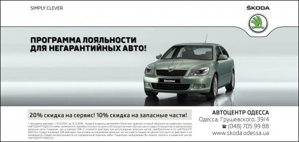 Программа лояльности для негарантийных автомобилей в нашем Сервисном Центре SKODA!