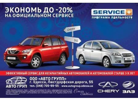 Автоцентр АВТО ГРУП заботясь о своих клиентах, объявляет о старте новой программы лояльности SERVICE+ для негарантийных автомобилей ZAZ, Chery!.