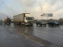 ДТП произошло в средней полосе, поэтому для движения свободны только три полосы. Трафик усугубляется тем, что в этом направлении движется много грузового транспорта.