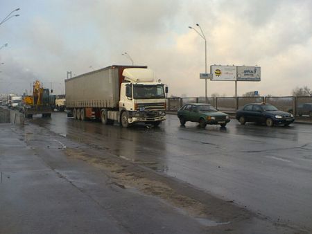 Водитель фуры с Хмельницкого, приехал на таможню в Борисполь, но не доехал. Образовалась тянучка возле Южного моста. Вызвали ГАИ, ожидают их прибытия минут 35-40.
