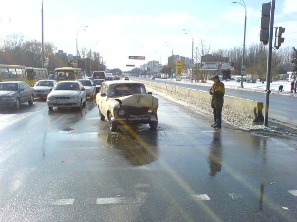 У «Москвича» поврежден передний бампер и половина передней части, у Ford – задняя часть. Из машин застрахован только Ford. По словам его владельца, страховая компания попала приблизительно на 2 тыс. долларов.