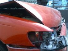 Спортивная красная Mazda догнала черный Mercedes S - класса и въехала ему в заднюю часть. В результате столкновения у Mazda снесло «передок», капот сложился в «гармошку», нет фар, пострадал бампер, передняя решетка. Mercedes отделался царапинами на бампере, пострадали парковочные датчики.