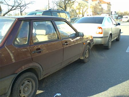 ВАЗ, вырвавшись из светофорной тянучки, решил вспомнить, что он скоростной автомобиль, совершил рывок в метров 50 и, оставив 5 метров горелой резины на асфальте, влетел в Skoda Octavia.