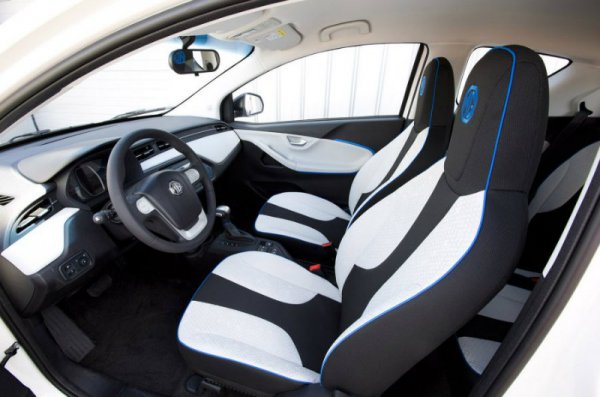 Дизайнеры британского отделения MG приложили руку к созданию европейской версии кузова автомобиля, и результат оказался весьма удачным. Получился стильный электромобиль, особенно привлекает внимание задняя часть кузова. Достойно выглядит и интерьер авто - в салоне достаточно много места для размещения 4-х взрослых ростом 180 см. Элегантная центральная тачскрин панель управления информационно-развлекательными системами; светлые вставки в панелях дверей добавляют интерьеру ощущение легкости и уюта.