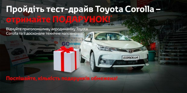 Пройдіть тест-драйв Toyota Corolla – отримайте подарунок!