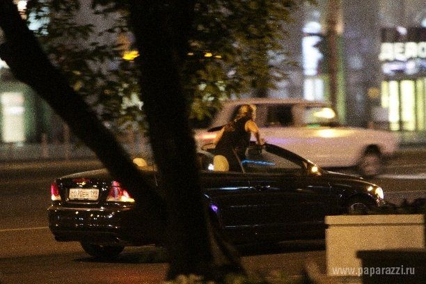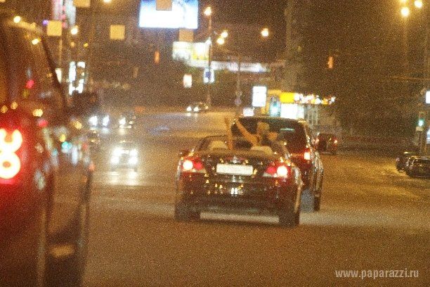 Затем девушки решили прокатиться по ночному городу на кабриолете. К слову, водитель Семенович глаз не спускал со своей подопечной, и всюду следовал за ней, отвлекая внимание охранников правопорядка.