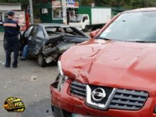 По словам водителя, когда он отъезжал от остановки, то увидел в зеркале заднего вида летящую «легковушку»... Citroen ВХ (несмотря на тормозной путь около десяти метров) не успел остановиться и влетел в зад автобусу. От удара «француз» отлетел назад, при этом его развернуло почти на 90 градусов и ему в зад (больше в левую часть) по касательной врезался проезжающий мимо Nissan Qashqai. В результате аварии автобус пострадал меньше всех, у «Nissan» из видимых повреждений - разбиты - бампер, капот и правое крыло, а также «противотуманка». У Citroen ВХ - повреждены передние крылья и фары, бампер с «противотуманками» и металлический капот, а также задний бампер, пятая пластиковая дверь и левое заднее крыло.