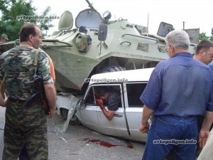"Украинский БТР", раздавивший авто с людьми, на проверку оказался российским. И раздавленные люди тоже граждане РФ, сообщает .