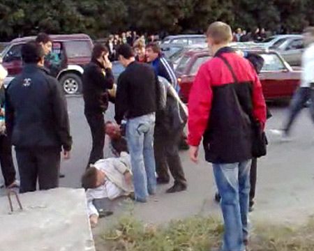 Дорожные хулиганы, или как ДТП с участием двух иномарок переросло в побоище. В воскресенье на улице Героев Труда столкнулись Opel Kadett и Mitsubishi Pajero. Во время аварии ни один автомобиль сильно не пострадал. Стекла полетели, когда водители и пассажиры решили выяснить отношения, схватившись за дубинки и ножи. Успокоить автомобилистов удалось только после прибытия бойцов спецподразделения «Беркут», сообщает .