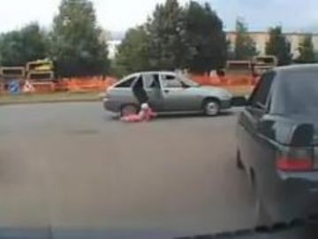 В городе Набережные Челны (Республика Татарстан - Россия) водитель ВАЗ-2112 собирался выполнить разворот на встречную полосу, но он явно не ожидал, что это приведет к следующему. Во время маневра задняя дверь автомобиля неожиданно открылись и из салона на дорогу выпал ребенок. Водитель остановил автомобиль лишь через несколько метров.