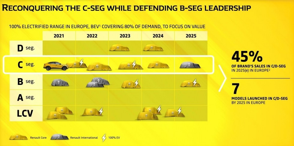 В середине января Grope Renault обнародовала новый план развития компании вообще и одноимённой марки в частности. Согласно этому плану, дешёвых моделей Renault больше не будет, так как бюджетный сектор отдан на откуп маркам Dacia и Lada. Марка Renault уйдёт из А-класса, наследника у Twingo не будет, а в В-классе появятся две электрические модели с ретродизайном - новые Renault 4 и Renault 5.