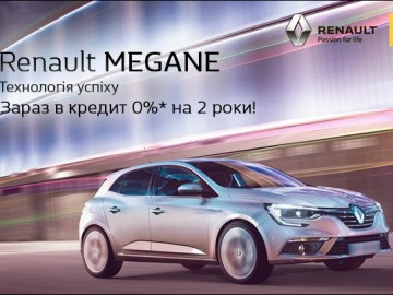 Разом зі стартом продажів пропонується кредитна пропозиція за програмою Renault Finance. На новий Renault MEGANE хетчбек діє кредит 0% на 2 роки** за умови початкового внеску 55%.