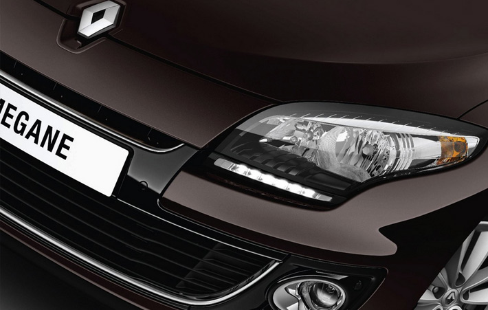 Megane получил заметные изменения в передней части. Обновленная оптика теперь имеет светодиодные элементы, а в переднем бампере появилась черная вставка. Изменилась и форма воздухозаборников. Renault Megane’2013 также получит литые диски обновленного дизайна. Кроме того, покупателям будут доступны два новых цвета: Azzurro Blue и Arctic White.
