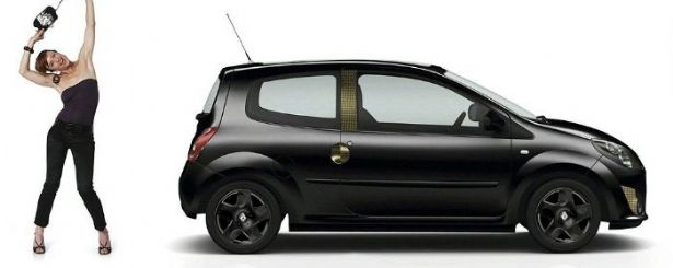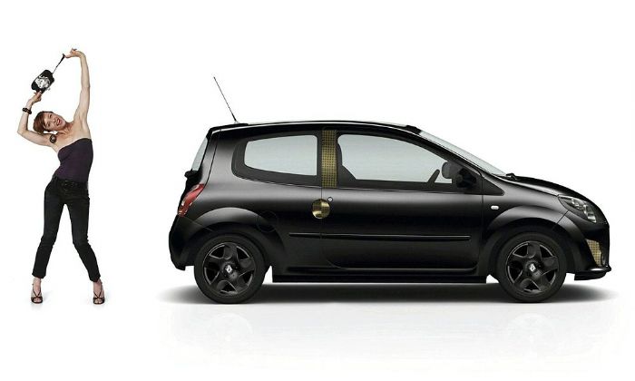 Эта машина адресована женской аудитории, что легко понять по "золотой" отделке кузова: на передний бампер, дверные ручки и боковые стойки автомобиля наклеена специальная пленка золотистого цвета. Также Twingo Dolce Vita получил черные колесные диски и боковые зеркала того же цвета.
