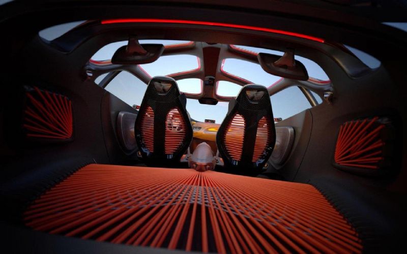 В салоне можно отметить спортивные карбоновые сиденья, обтянутые тисненой кожей. А сзади располагается многофункциональное багажное отделение. В этом месте крыша стыкуется с тремя уровнями веревок, которые позволяют изменить конфигурацию отсека хранения.