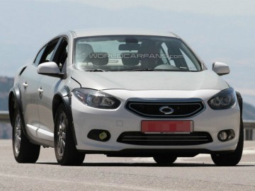 Машина пока еще «одета» в кузов-мул Samsung SM3 (Fluence по-нашему). В основе новинки лежит модульная платформа CMF с передним приводом.