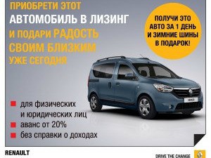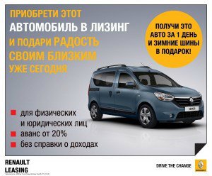 C 4 ноября 2013 года в Автоцентре RENAULT ООО "АВТО ГРУП+" действует специальное предложение «Авто в лизинг за 1 день!» по программе «Renault Leasing».