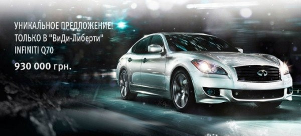 Только до конца месяца в дилерском центре Infiniti «ВиДи-Либерти» Вы можете приобрести последний автомобиль Infiniti Q70 2014 года выпуска по специальной цене — 930 000 грн. с НДС.