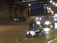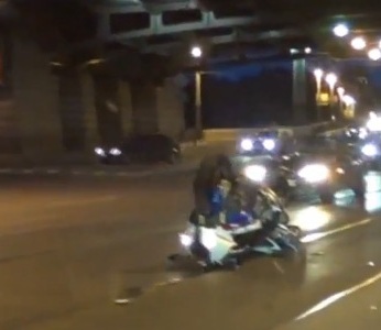 Из-за пешехода, перебегающего проезжую часть в неположенном месте, перевернулся мотоциклист, а нарушитель при этом не пострадал. Авария произошла в Санкт-Петербурге ночью в минувший понедельник. О данном ДТП написал американский портал Carscoop.