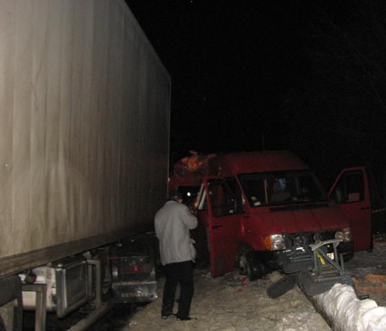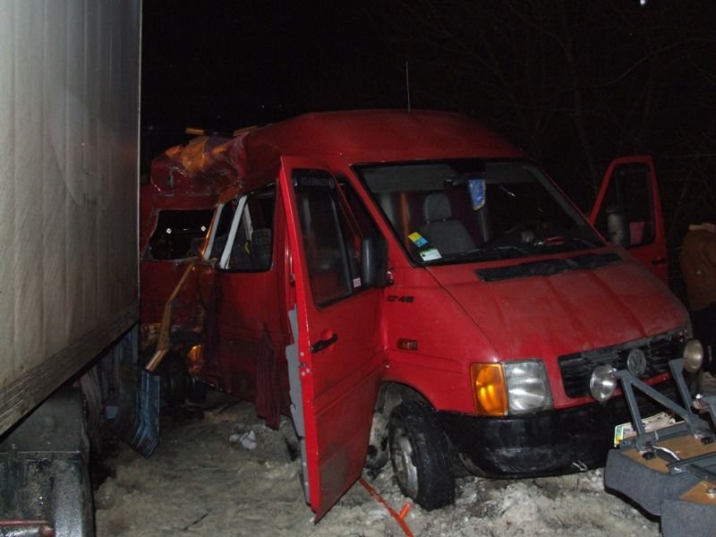 Столкновение микроавтобуса Volkswagen и грузового автомобиля Renault произошло в 17:12 около села Великая Омеляна Ровенского района.