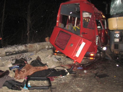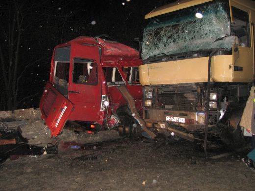 По предварительным данным, микроавтобус, в котором находились 18 человек, занесло на скользкой дороге на встречную полосу, по которой во встречном направлении двигался грузовик.