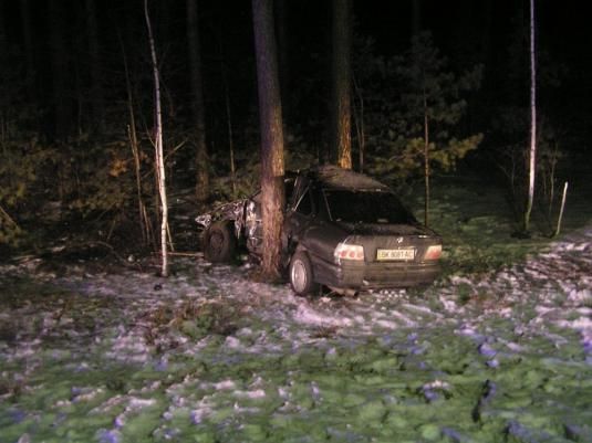 ДТП произошло во вторник, 2 января, приблизительно в 04:00 на автодороге Киев-Ковель, вблизи райцентра Сарны в Ровенской области. Автомобиль BMW на скорости слетел в кювет и врезался в дерево. Водитель и пассажирка погибли на месте происшествия.