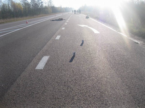 В результате дорожно-транспортного происшествия пешеход от полученных телесных повреждений погиб на месте происшествия.