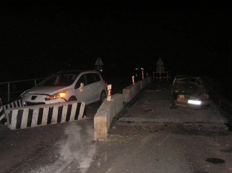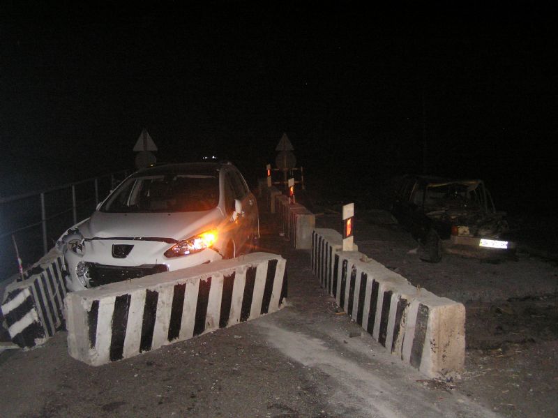 После чего от сильного удара данный блок вылетел на полосу встречного движения и врезался в автомобиль Peugeot, под управлением 31-летнего жителя г. Ровно, который двигался во встречном направлении. К счастью, автомобиль ЗАЗ каким-то чудом не улетел в пропасть, а завис на мосту, иначе человеческих жертв избежать не удалось бы.