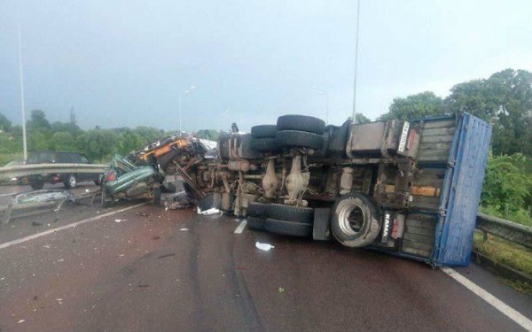 Грузовой автомобиль "КамАЗ", маршрутный микроавтобус и легковой автомобиль столкнулись на международной трассе "Киев-Чоп" в с.Бабин Гощанского района Ровенской области в пятницу, 7 июня, около 17.00 часов.