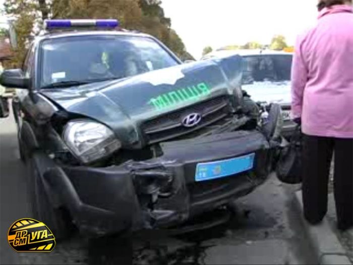 ДТП произошло в г. Ровно 23.10.09 около 14.00. Водитель автомобиля Opel Ascona спокойно поворачивал направо с улицы Грушевского, в то же мгновение служебный автомобиль Hyundai Tucson снес с дороги иномарку.