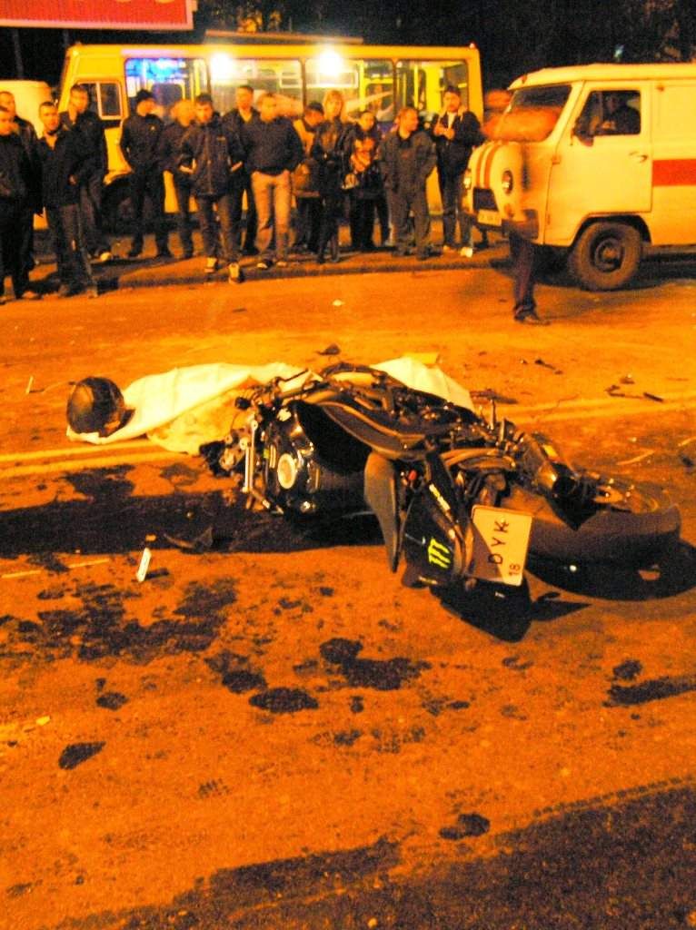 30.10.2010 около 19:45 в г. Ровно по улице Киевской, напротив дома № 67А, водитель автомобиля Volkswagen Passat, Олег, 1962 г.р., проживает г.Ровно, начиная движение от правого края проезжей части дороги и выполняя маневр разворота налево, не уступил дорогу и допустил столкновение с мотоциклом Kawasakib ZX-6R, под управлением Дениса, 1993 г.р., проживал г.Ровно, который двигался по улице Киевской со стороны ул. Д. Галицкого, в направлении ул. Грушевского по левой полосе движения в попутном направлении позади указанного автомобиля.