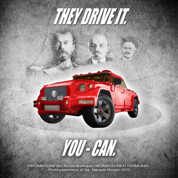 Да, не просто "Комбат", а Monaco Red Diamond Edition! Похоже, в России всерьез решили заняться авто-завоеванием. Сначала "Маруся", теперь "Комбат"... Эксклюзивная модификация создана в честь выставки суперкаров Top Marques Monaco (традиционный "монаковский" праздник богачей). От "стокового" варианта, Monaco Edition отличается окрасом, 22-ми колесами и всевозможной атрибутикой СССР. Один только слоган чего стоит! Иностранцы такое ох как любят...