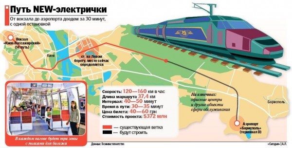 Полотно под скоростную электричку «Воздушный экспресс», которая будет курсировать от вокзала в аэропорт «Борисполь», начнут строить уже в октябре, а в 2014-м году на ней поедут первые пассажиры. Во всяком случае, в этом уверяют инициаторы новинки, сообщает .