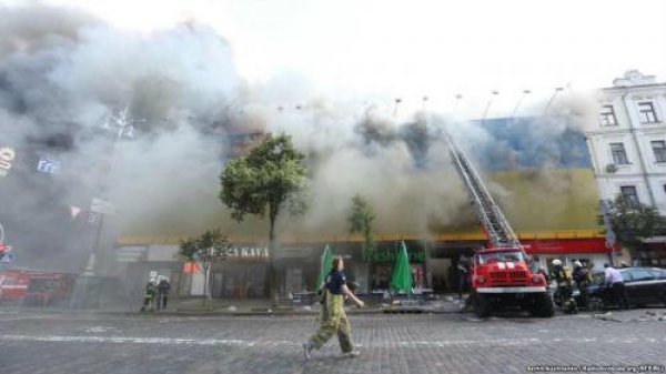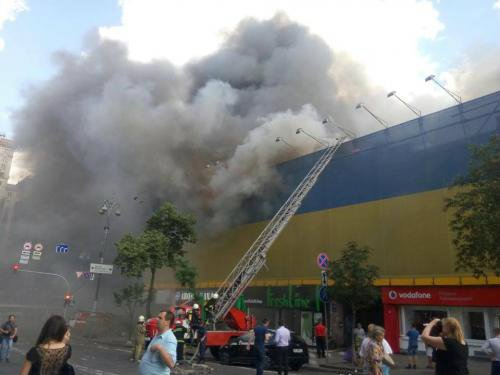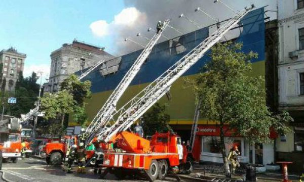Вчера, во второй половине дня, в самом центре Киева, по адресу улица Крещатик 40\1 возник пожар на верхних этажах реконструируемого здания. За считанные минуты Крещатик заволокло дымом и сквозь него стали видны языки пламени. Столб черного дыма видно было по всей округе. На сообщения о пожаре прибыли спасатели киевского гарнизона, сообщает .