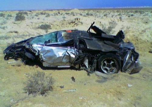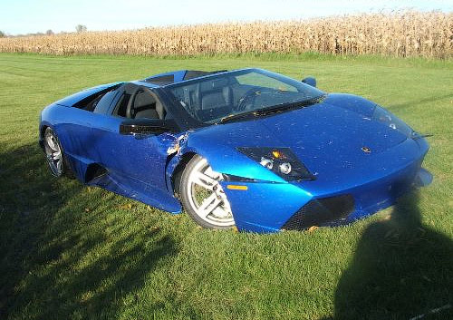 Владелец разбил свой Lamborghini Murcielago через шесть дней после приобретения. Машина на скорости 225 километров в час столкнулась на шоссе с грузовиком. Водитель не пострадал