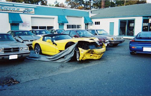 Этот Dodge Viper разбил работник дилерского центра, поехавший заправить автомобиль для того, чтобы потом отдать его клиенту, ожидавшему свою машину в автосалоне