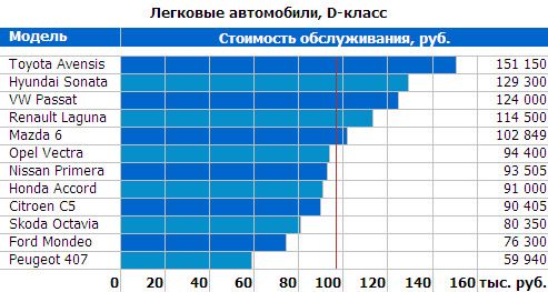 Учитывая, что среднестатистический автомобиль проходит около 25 тыс. км в год, только на техобслуживание в течение шести лет приходится отдавать около 15 тысяч рублей в год. А если речь идет о более дорогом автомобиле, например Toyota Avensis (D-класс), расходы на обслуживание увеличиваются до 150 тыс. рублей. Фактически это означает, что автовладелец отдает дилеру в счет будущего ТО по рублю за каждый пройденный километр.